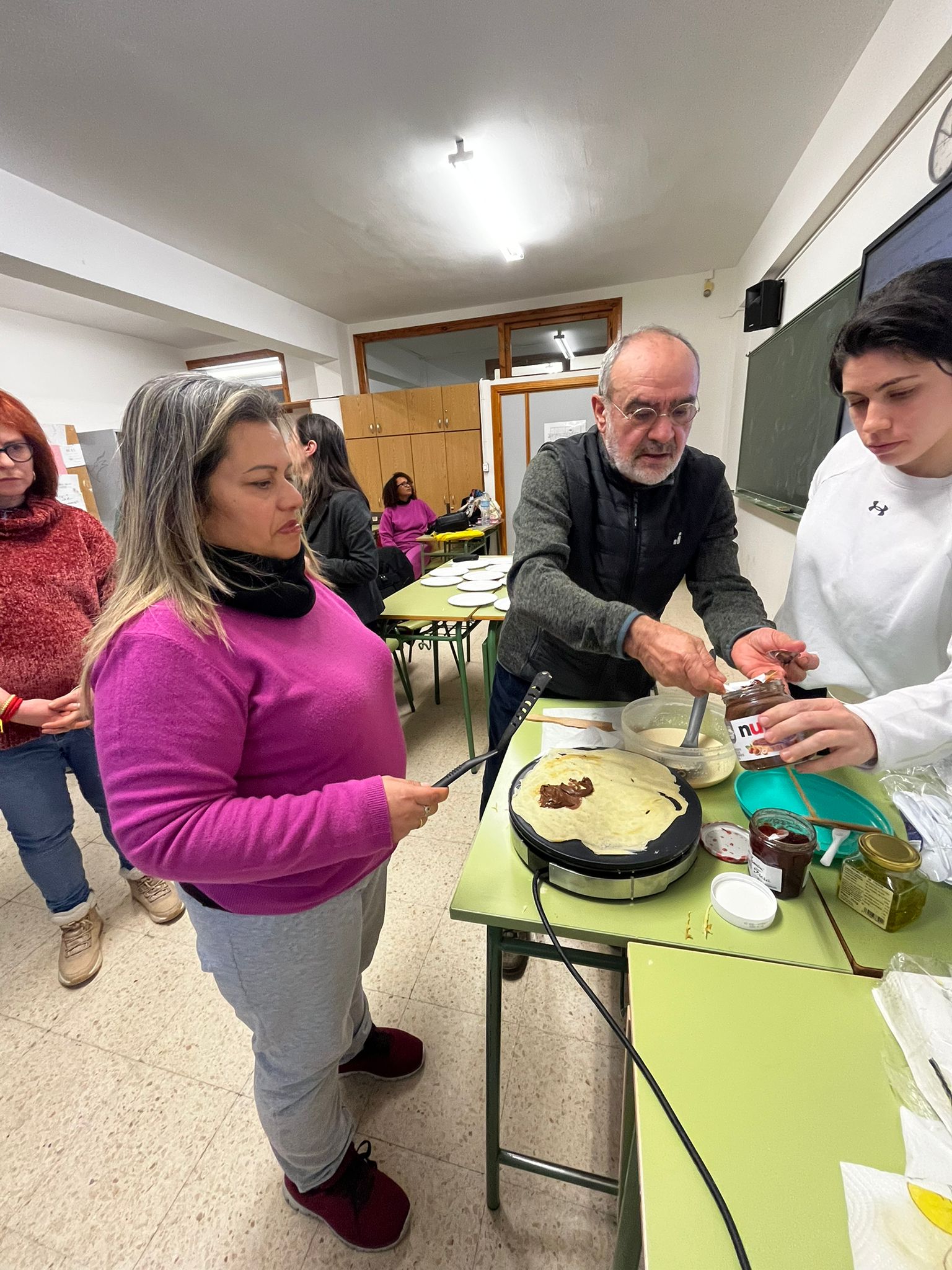 El lunes 2 de febrero, los alumnos de francés de la EOI Rio Vero celebraron la fiesta de la «Chandeleur», tradicional en Francia, preparando y degustando unos crepés.